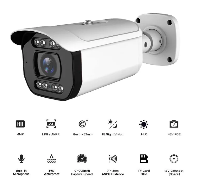 Camera LPR ANPR 4MP nhận dạng biển số xe tự động Hệ thống camera IP POE bãi đậu xe